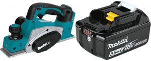 This Makita cordless planer operates on the 18V LXT platform and demonstrates high power-to-weight efficiency in battery-powered operation.
